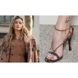 Stella McCartney Stella 100 Reptile Print Heel Sandals Chain Strap Brown Sz 6/36