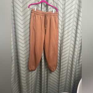 These Size Large Adidas by Stella McCartney Sweatpants in camel brown combine comfort and high-end athleisure style. Designed with a relaxed fit, tapered legs, and ribbed cuffs, these joggers offer a flattering yet laid-back look.