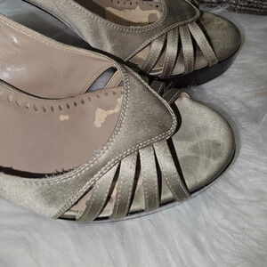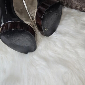 Stella McCartney Taupe Silk Wooden Heel Platform Pumps EU 38