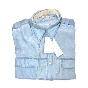 Stella McCartney Womens Blue Silk Collared Long Sleeve Button Blouse Sz 10 New