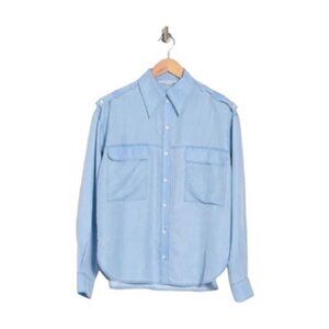 Stella McCartney Womens Blue High Low Collared Silk Lina Shirt Blouse Sz 10 US (44 IT) NWT