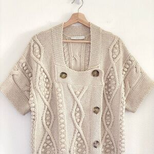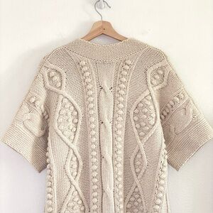 Stella McCartney Wool Cashmere Blend Chunky Cable Knit Bobble Cardigan in Ecru, Women’s IT 40 / US 4 - 6. Can also fit Medium - Large, see measurements for desired fit.