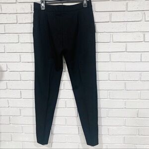 100% wool. Made in Hungary. Dry clean only. Hook and bar front closure. Side slit pockets. Length 36.5.” Inseam 28.” Waist measurement lying flat 15.5.”