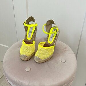 Stella McCartney Yellow Mesh Espadrille Wedge Heels Size 35