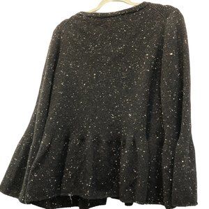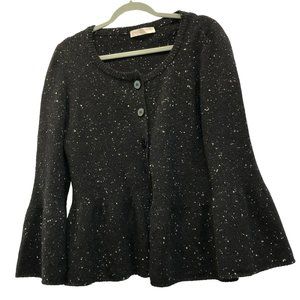 Stella McCartney black speckled cardigan sweater peplum flare cuff L ITALY
