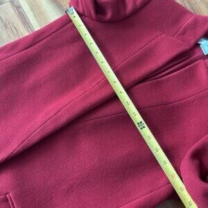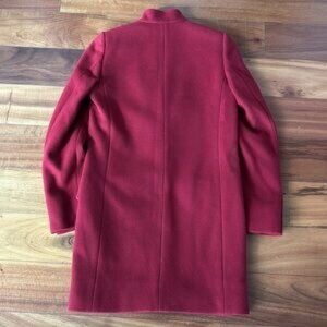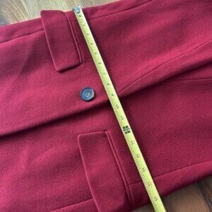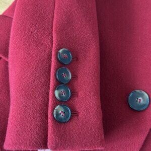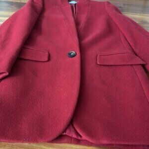 Gorgeous deep red Stella McCartney oversized single button blazer. Wool blend but the fabric tag is removed. There is one area about the size of a dime that the material has thinned (pictured), otherwise great used condition. EU size 36 - fits like XS