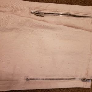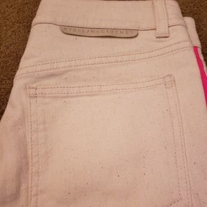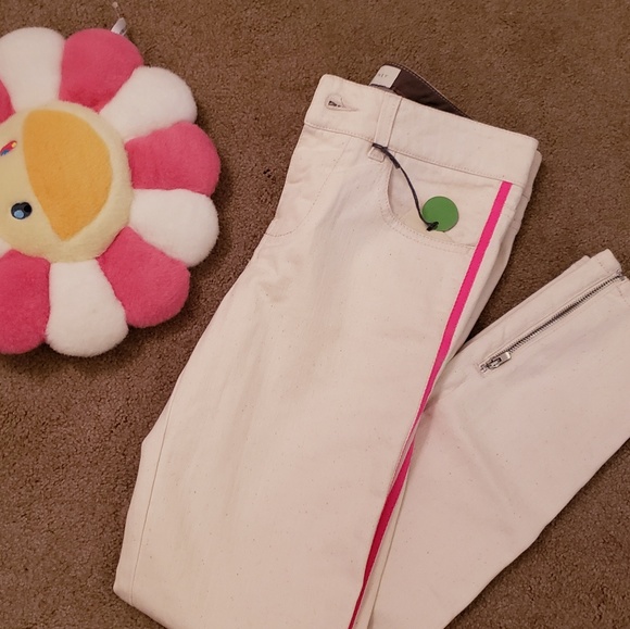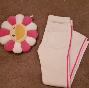 light cream colored speckled skinny jean with a neon pink stripe down the side, size 26, new with tags, never worn. too small wish i could keep them bc i love them. very cute.