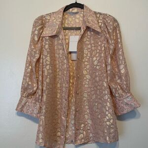 Stella McCartney silk metallic animal spots woven button top Size EU 42