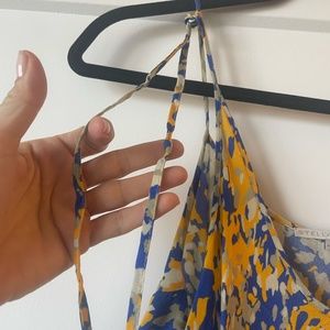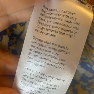 will fit many sizes as you can tie to fit your needs at the shoulders. nice draping. longer in front then back. came with matching pants that I didnt buy but maybe you can find somewhere else. 100% viscose