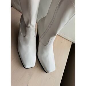 Stella McCartney white Cowboy stretch ankle BLOCK HEEL BOOTS size 38/ US 8