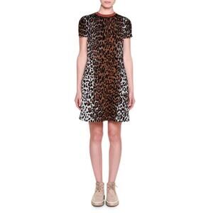 Stella McCartney wool blend Short-Sleeve Leopard-Print Shift Dress EU 40/US S