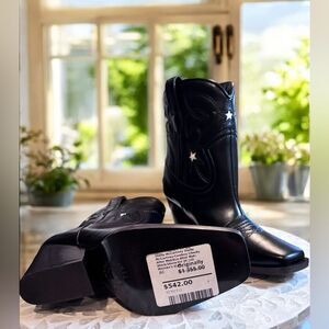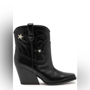 Stella McCartney cowboy boots. Western embroidery, cut-out star details, tabs at sides, square toe.