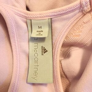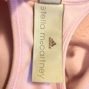 RARE style Light Support Sports Bra by Adidas Stella McCartney. Baby pink microfiber texture with soft unmolded cups. Best for yoga/low impact. Adjustable straps. EUC.