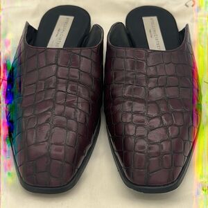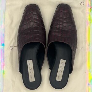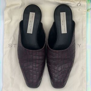 Stella McCartney Burgundy Faux Croc Embossed Leather Mules Size 38 / US 8