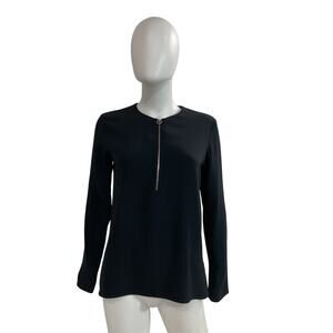 Stella Mccartney Black Rayon Crew Neck Long Sleeve Sweatshirt Size OS: long sleeve with crew neck, exposed zip closure at front.