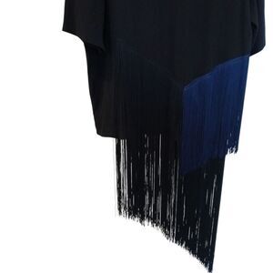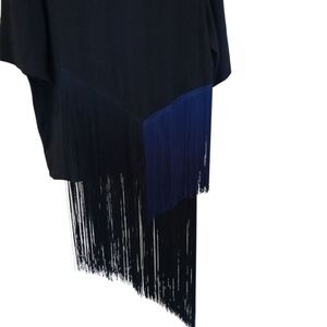 Stella Mccartney Edith Two Tone Fringed Crepe Tunic Black/Blue US 8/10 Party. No Defects.