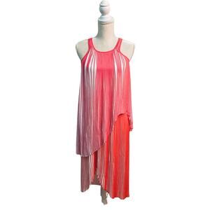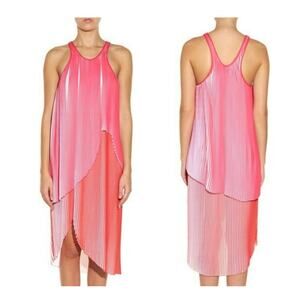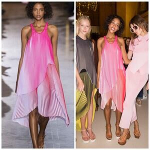 Stella Mccartney Primrose Plisse pleated chiffon midi dress. Gorgeous unique dress as seen on the Stella Mccartney runway. Loose light and flowy with 2 layers of pleated material with alternating white & pink. It moves with you. Curved assymetric hem. Racerback & sleeveless. Hidden zipper under first layer. In excellent condition!