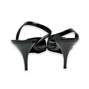 These classic heels are stunning! Patent black that really shines. Modern with their sleek cuts, pointed toe, and sling back heel. Quality materials and made in Italy. Soles read, “Suitable for vegetarians.” Coming to just about 3” in height keeping them wearable throughout the day. Fits US size 8.5-9. Comes with duster bag.