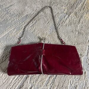 Stella Negro red maroon Italian leather chain shoulder bag clutch
