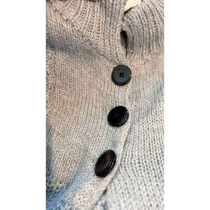 Hand-knitted wool-blend sleeveless cape with buttons.