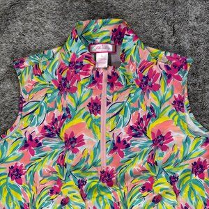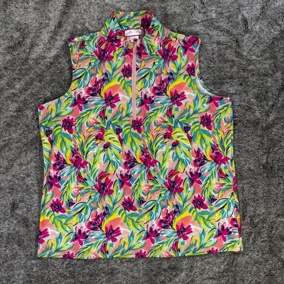 Stella Parker Golf Collection Floral Sleeveless Mock Golf Shirt Sz L