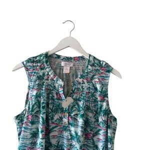 Stella Parker Sleeveless Novelty Print Palm Trees Turquoise Beach Lightweight Women’s Top SZ XL # 2510