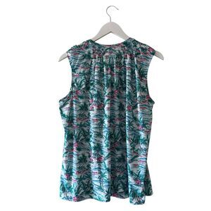 Stella Parker Sleeveless Print Palm Trees Turquoise Beach Top SZ XL # 2510
