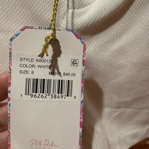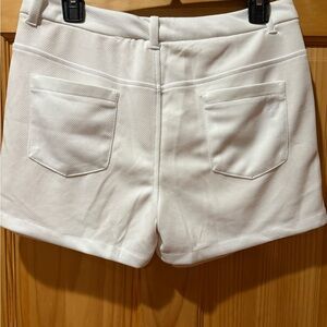 Stella Parker brand women's shorts. They are white, have a button and zipper closure, belt loops, and front pockets, and a tummy control lining. These shorts are NWT size 8. Thanks for looking!