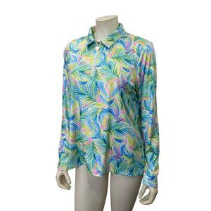 Stella Parkers Sport Womens Pastel Leaf Print Long Sleeve Pullover Top L