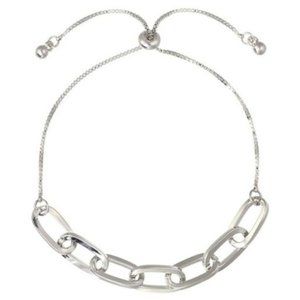 Unique and gorgeous silver bracelet, with a chain link pattern to draw attention and add a little edge but with a toggle drawstring closure in the same silver that makes for a perfect fit and adds a little daintiness to the piece.