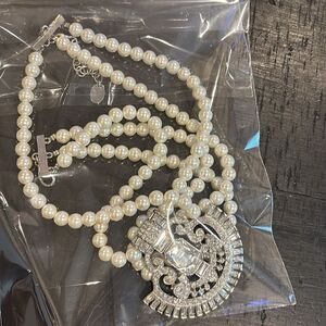 Stella & Ruby Pearl Rhinestone Elegant Formal Fancy Necklace Collar Statement