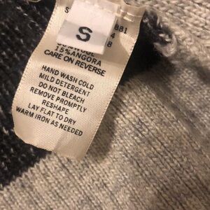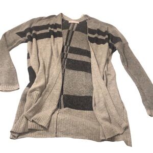 Stella Skye Nylon, Wool and Angora Blend Longline Cardigan Size Small. Brand new, have just had it hanging in my closet. Very soft cozy cardigan in different gray tones and statement stripe design.