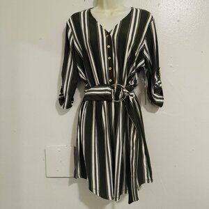 Stella Tweed Dress Womens Size Medium Olive Green/White color 3/4 sleeve New