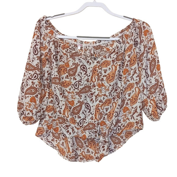 Stella Tweed Size Medium M Blouse Paisley Sheer Light Weight Top Boho