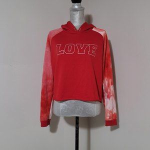 Stella Tweed Tie dye Hoodie Cropped Pullover Red Love Large