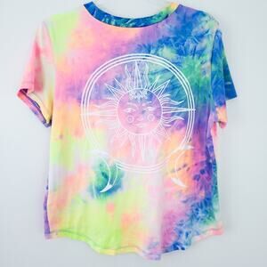 Stella Viva Tie Dye T-Shirt Sun Graphic Size Medium Bright Colors Pink, Blue