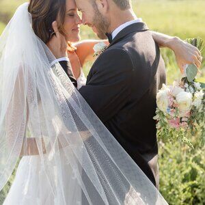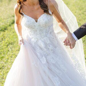 Floor length Veil available in perfect condition, purchased separately. Paid $999, selling for $500.