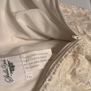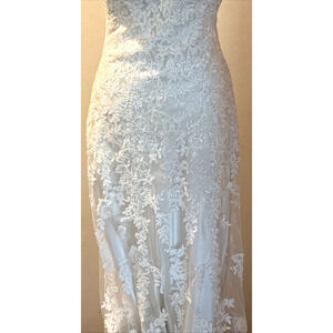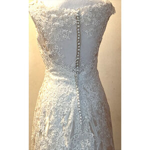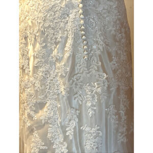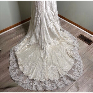 STELLA YORK WEDDING DRESS SIZE 12 IVORY LACE FIT & FLARE ILLUSION NECKLINE CHAPEL TRAIN