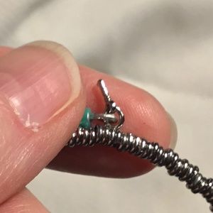 Silver and turquoise bracelet, with a heart, key and arrow charm.