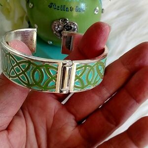 Turquoise and Green 3/4 inch bangle with silver. Spring opening with magnetic closure. Lead free/ nickel free. No tarnishing. Fits 7/8 inch wrist. Nice spring/summer look. ๐๐๐