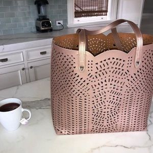 Vegan leather rose gold tote with shiny silver hardware. Detachable pouch inside. EUC