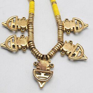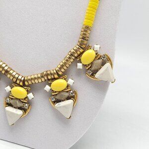 This Stella & Dot statement necklace is designed with a bold combination of yellow and gold tones. The intricate design features unique geometric shapes, making it a striking accessory for enhancing any professional attire with a touch of elegance and individuality.