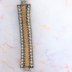 Fabulous day-to-night style featuring mixed metail open-link chain with thread wrapped glass crystal cupchain.