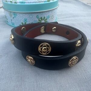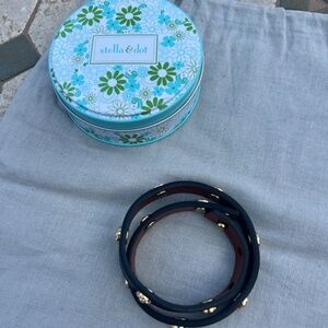 This is a Stella and Dot Wrap Bracelet. Pre-owned but I don't think it was used. It is in good condition and comes with original tin box. The color is black and gold. Please see all photos.