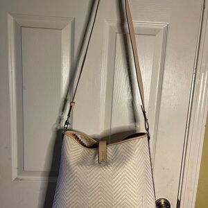 Stella & dot Rattan woven beige large shoulder bag with cream trim and strap