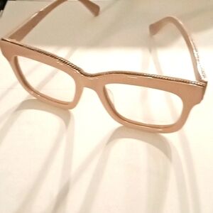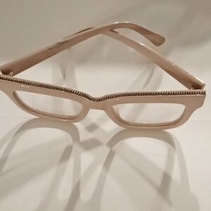 Stella mcCartney muted rose glasses with silver chain embellishment.