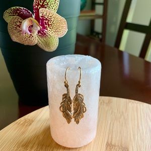 Stella&Dot feather detail “secret treasure” earrings. Gold with center stones. Very pretty and excellent condition