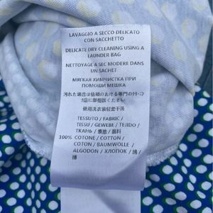 Stella McCartney Multicolored Crewneck T-Shirt w/Mesh Accents. Size XS (IT 36). Detailed with polka dot pattern and multicolored sheer mesh inserts. The mesh decoration gives a bit see-through effect and is fun to wear in summer! Cotton. Excellent pre-owned condition other than some faint yellowing at the collar line. Not noticeable when wearing. Ships from a smoke and pet free home. Pit to pit lying flat measures 17".