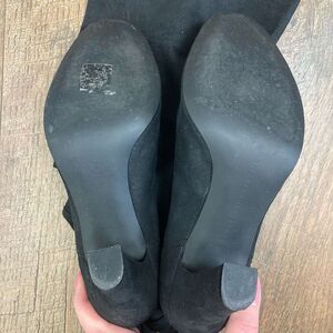 Stella McCartney Suede Knee-High Slip On Boots Black Round Toe Block Heels EU 36