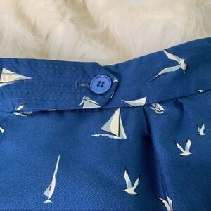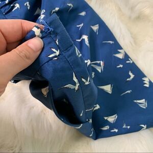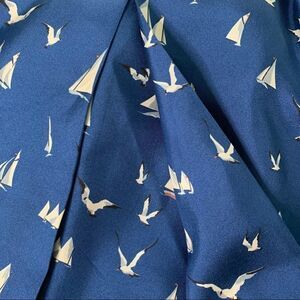 Stunning silk skirt by Stella McCartney. Perfect spring and summer wardrobe piece. Features adorable print of seagulls and sailboats with pleated design as shown. Pockets at the sides. Couple of small silk pulls as shown, no holes and not noticeable when wearing. Size tag removed but fits best like a US size 6/Italian size 40. Lying flat waist approx 14.5” across and top of waist to bottom hem approx 15.5”. All measurements are approximate